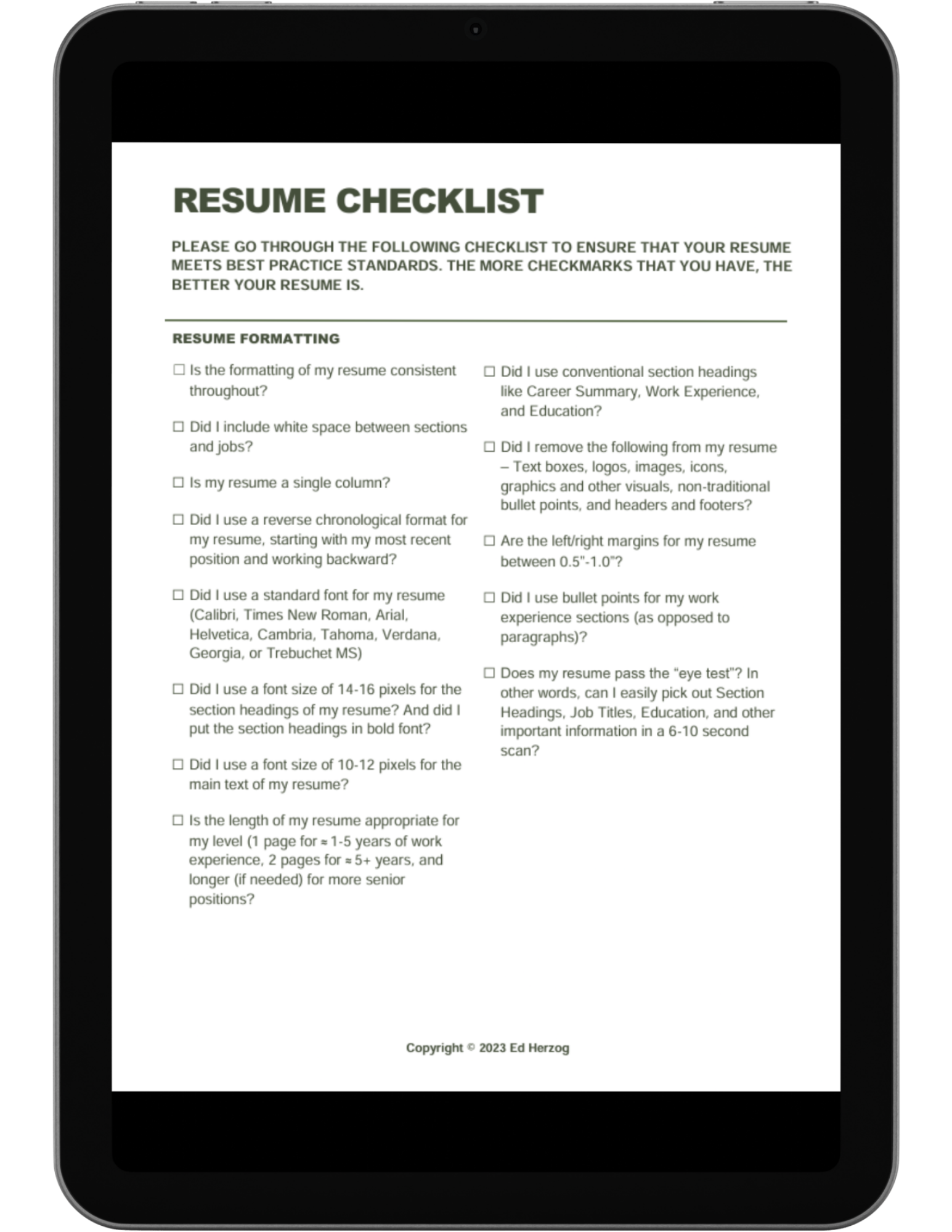 Resume checklist (30+ items)